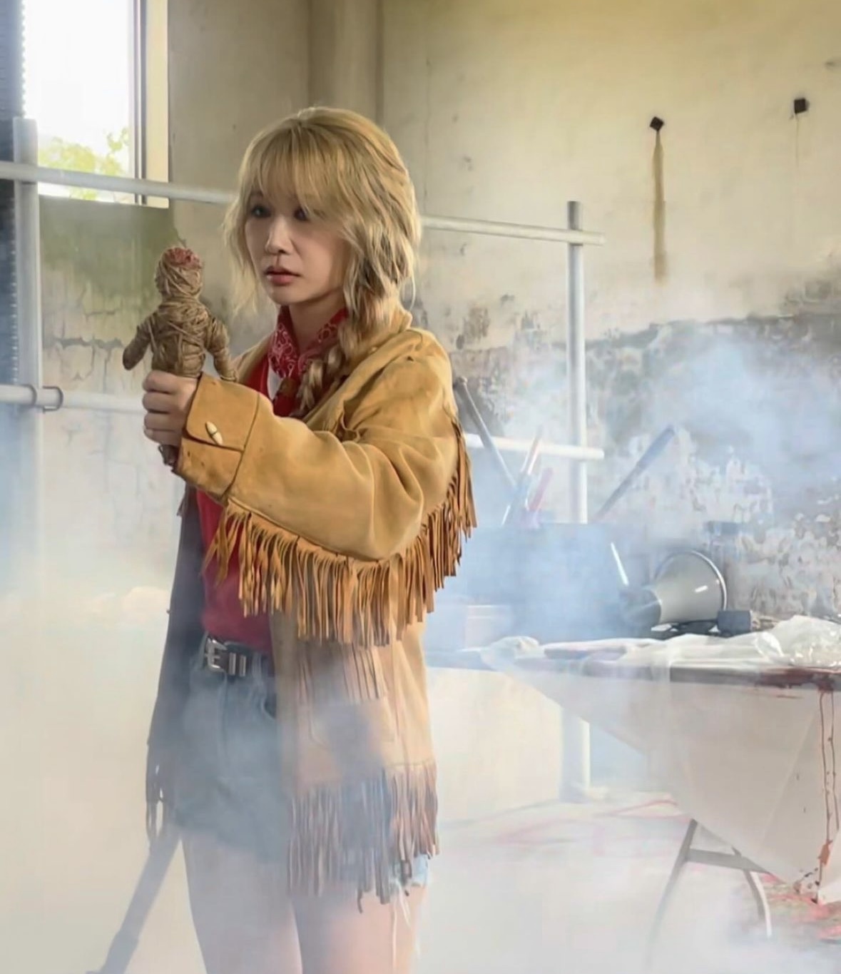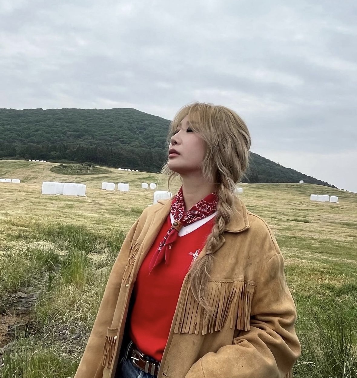 자연스러운 앞머리와 양갈래의 땋기로