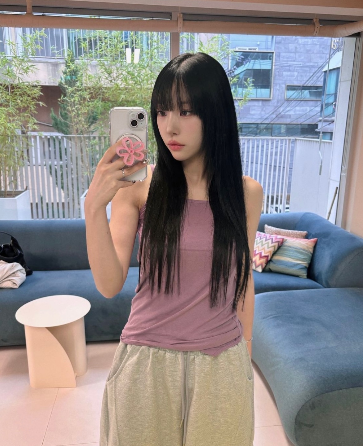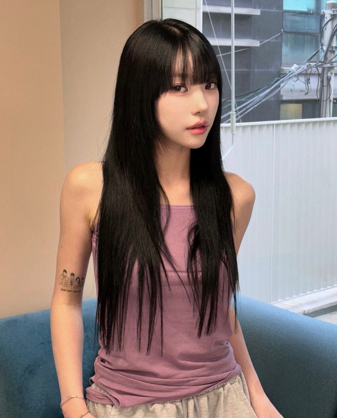 올 블랙에 풀뱅이 너무나 찰떡같이