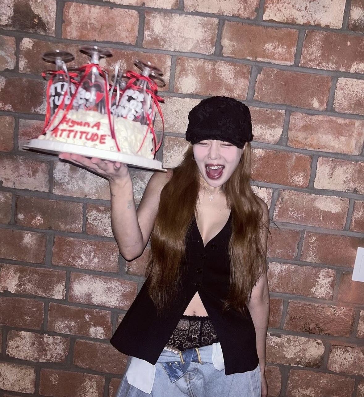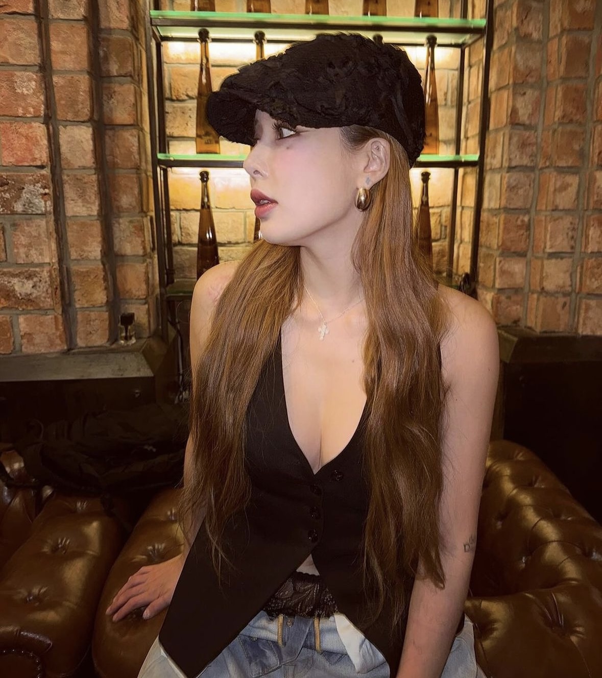 밝은브라운 컬러 피스로 붙임머리를 하신 현아님~!