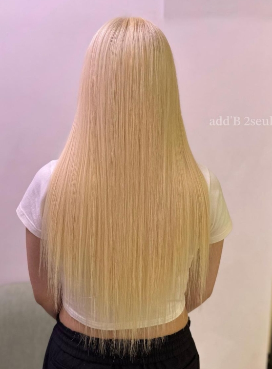 겨울에도 화려한 백금발 탈색붙임머리가
